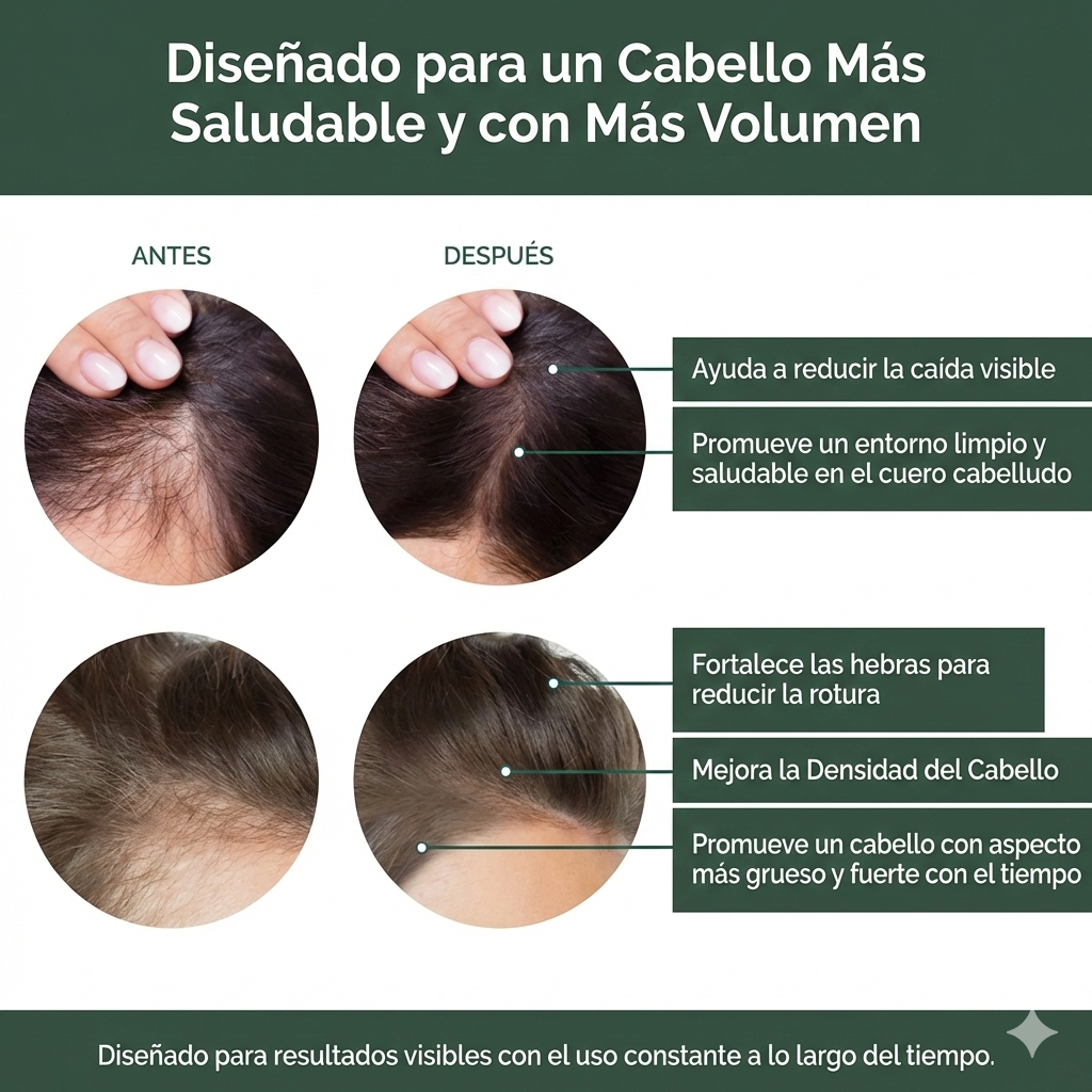Ayuda a mantener el cuero cabelludo limpio, equilibrado y saludable, clave para un buen crecimiento.